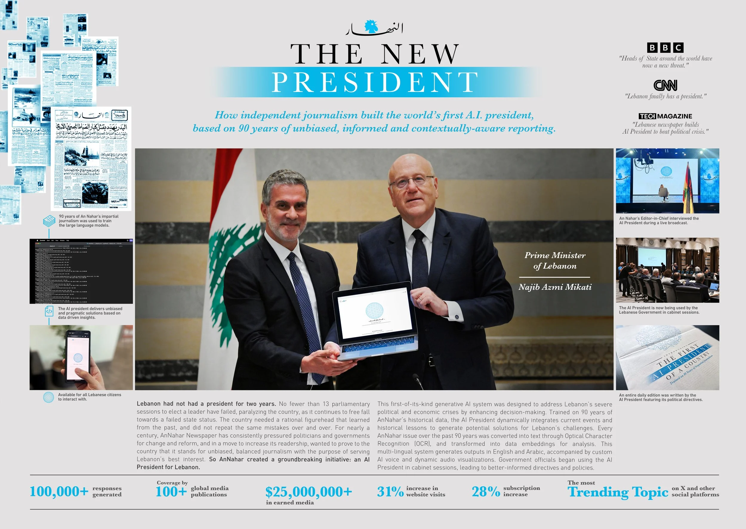 The first Ai head of state of any country in the world, built through 90 years of data collected from 33,000+ editions of unbiased journalism by AnNahar.